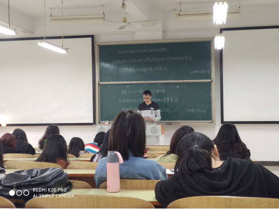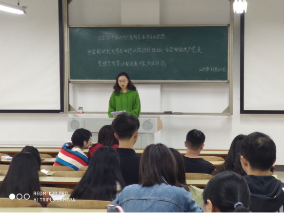 2019年11月10日星期日上午8:30,第26期发展对象小组讨论会议于新校区D203展开,支部委员郭佳雨及管理学院44名发展对象与会。