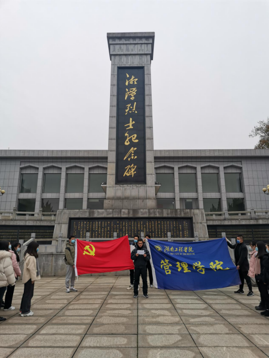缕缕微风、绵绵细雨,诉不尽对革命烈士的无限深情,道不尽对烈士英魂的无尽哀思。我校管理学院在2020年12月17日组织全体管理学院党员和预备党员去湘潭烈士陵园进行宣誓仪式。缅怀革命先烈宣誓仪式,在支部书记周艺老师的主持下展开,中共湖南工程学院管理学院委员会党委副书记张宏也应邀参加了此次活动。
