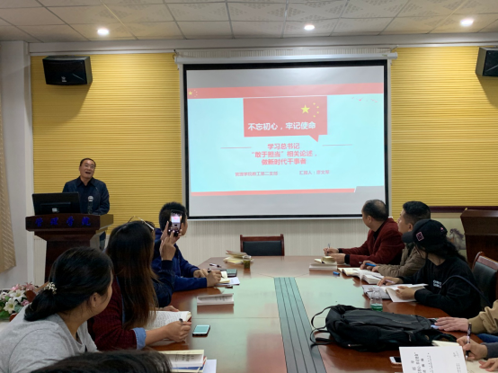 教工第二党支部书记廖文军讲党课《学习习近平总书记“敢于担当”相关论述,做新时代干事者》