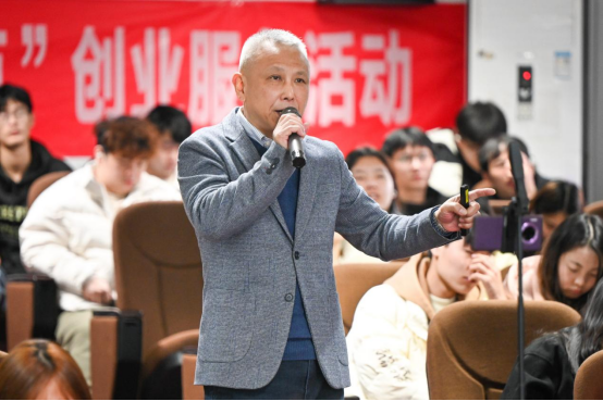 讲座中,诸雪兆先生详细分享了自己在上市公司任职20年销售总监的心得体会。他结合自身丰富的职业经历,讲述了从国企到民企的转变过程中所面临的挑战和机遇,分享了自己如何凭借坚定的信念和卓越的智慧在激烈的市场竞争中取得成功的宝贵经验。他特别强调了创新理念在创业过程中的重要性,鼓励同学们在未来的职业生涯中勇于创新、敢于突破。