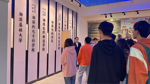 学生党员们沿着学校历史的长河,认真聆听讲解员的介绍:校史馆以湖工蓝、未来白、人文褐、革命红为主要设计色彩,展现简洁大气又不乏历史厚重感的设计风格。展馆面积850平方米,2021年5月落成,主要包括印象篇、历史篇、英才篇、风华篇和远航篇五个展厅,展示了五大篇章、九个模块的内容。校史馆共展示照片680余张,实物400余件以及近年来学校取得的教学、科研重要成果获奖证书、著作。在校史馆中,学生党员亲身感受到学校的发展历程,了解了学校曾经的点滴和艰辛,感受到学校优良传统的厚重与底蕴。学生党员们眼前一张张黑白照片映照着往昔,如同时光隧道,共同见证着湖南工程学院的奋斗历程,传承“锲而不舍,敢为人先”的校训精神。