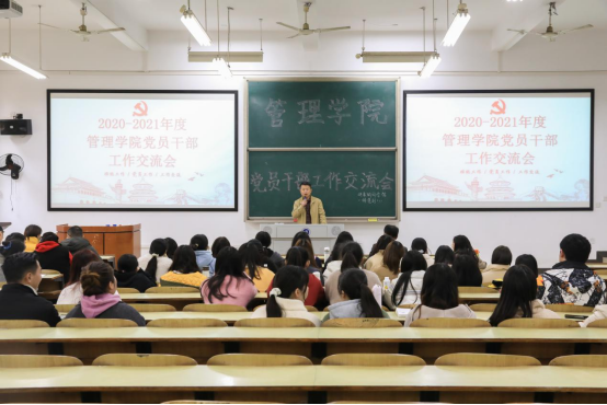 3月19日下午,我院在主教学楼D-101召开2020-2021年度管理学院党员干部工作交流会。学院领导、辅导员、学生正式党员、预备党员参会。管理学院党委副书记张宏主持会议。