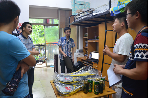 老师们分两队进行走访排查,钱书记在男生宿舍逐间走访,“接地气”的敲门,与学生们亲切交谈。在本次安全排查中学院大部分宿舍卫生状况良好,物品摆放有序,地板干净、床铺整洁,空气清新。多间连续5-6次获得校级“优秀寝室” 的同学们获得了钱书记由衷地“点赞”,并鼓励他们继续保持;对于部分卫生状况略有欠缺的寝室,给予耐心劝导,同学们表示将严格整理寝室内务。