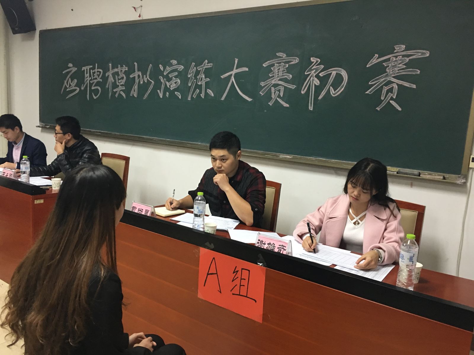11月10日,由湖南工程学院管理学院组织部、就业部联合举办的应聘模拟演练大赛初赛在新校区教学楼G505准时进行。邀请到的评委分别是:金健乳业湘潭地区总代理廖建新,金健乳业股份有限公司营销部经理戴尚昊,湖南省“自强之星”王长雨和上届应聘模拟演练大赛亚军谢雄奇,面试对象为参赛选手。