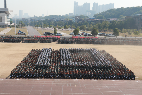我校19 级5000多名新生为期14天的军训成果在今日得到了检验。此次大会表彰了同学们在军训活动当中的出色表现,也向祖国母亲的70华诞献上了真挚的祝福!