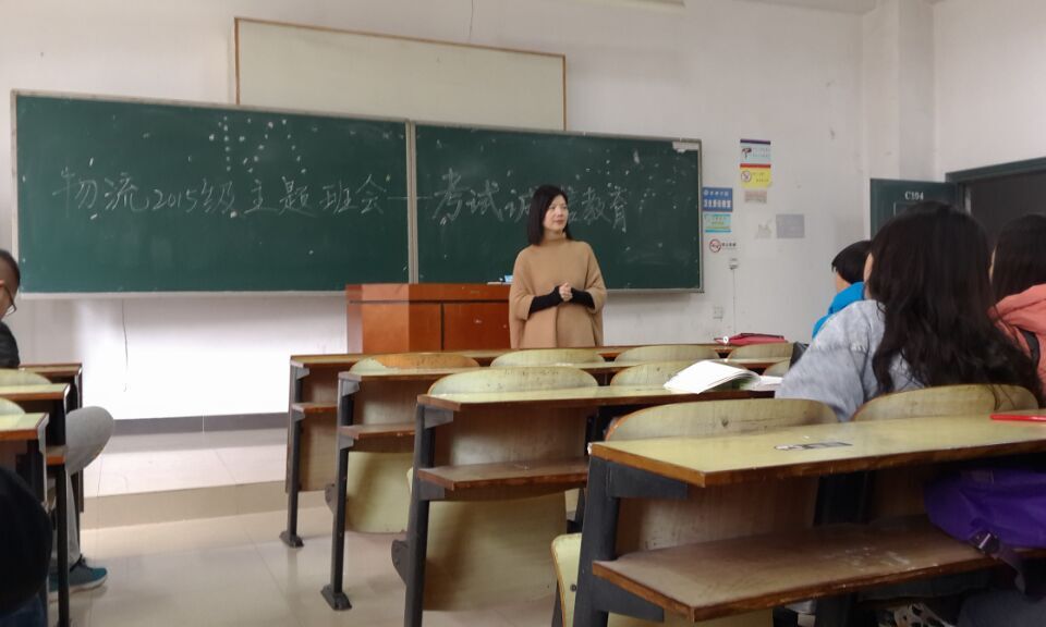 11月27日上午,管理学院各班级在新校区教学楼顺利召开“考试诚信教育”主题班会。物流管理专业15级在C104在召开,班主任罗荃老师主持。