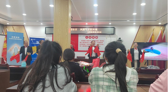 活动进行到后半环节,湖南银行湘潭分行的工作人员们为民众耐心回答问题和宣传反非法集资。他们面带微笑,轻声细语,言语里满是温柔,仔细聆听民众的问题,认真耐心地回答。渐渐地活动进入尾声,工作人员们进行了最后一项活动——“敲快板”。他们手里拿着飘着红丝带快板,话语铿锵有力,快板的敲击声好似人声鼎沸。在这种活跃的气氛里,人民群众加深了对此次宣传反非法集资讲座内容的理解。
