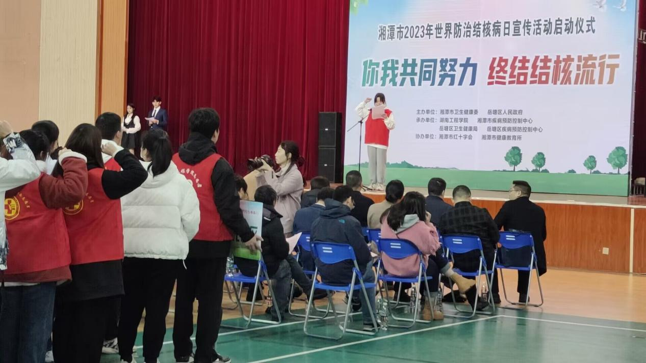 3月24日,湘潭市第28个“世界防治结核病日”主题教育宣传活动启动仪式在湖南工程学院体育馆内举行,市卫健委党委副书记、副主任赵文著发表讲话并宣布活动启动,湖南工程学院副院长向前、市疾控中心主任曹峰等出席。