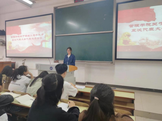 为深入学习党的二十大会议中的重要内容,弘扬伟大建党精神,引领我院师生继承党的光荣传统,强化坚定不移跟党走的理想信念,按照有关规定,结合我校实际情况,经学院党委同意、报校学生会、校团委审定同意后,于10月21日在主校区D102召开湖南工程学院管理学院第五次学生代表大会正式代表选举大会。