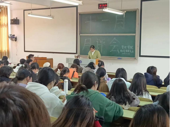 为使学生们对学院本月的工作有更深层次的了解,11月21日,湖南工程学院管理学院主校区大一全体同学,大二、大三各专业班级学号为单数的同学,大四各班五名班委,南校区23级电商、大数据全体同学,23级会计学各班学号为单数的同学参与了会议讲评。本次会议由八名学办老师进行线下月讲评。会议分为常规工作报告、学生活动、共青团工作、党务工作和安全教育五个部分。