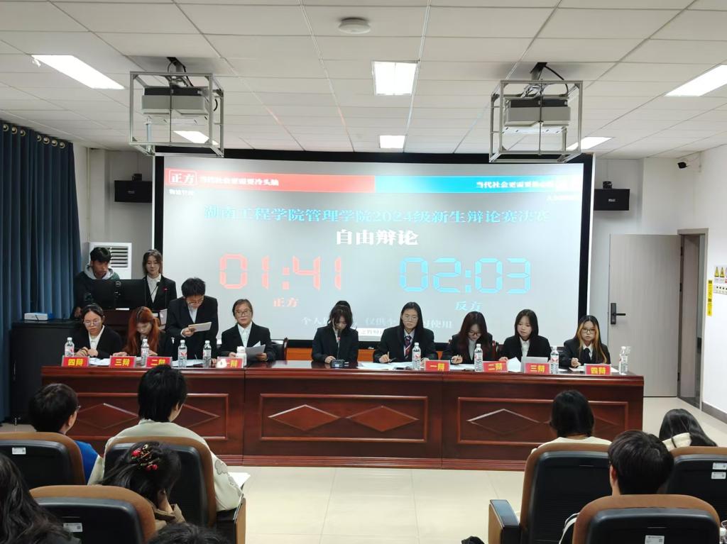 本场比赛邀请了在整个11月的赛程中,各新生队伍围绕多个辩题展开了激烈而精彩的辩论。而在最终的总决赛上,管理学院学生办公室彭小玲老师、管理学院主席团成员、校辩论队代表、各学院学习部负责人及辩论队成员均莅临现场,共同见证了这一智慧与口才的盛宴。他们的到来不仅为比赛增添了庄重与分量,也体现了学院对此次活动的高度重视与支持。