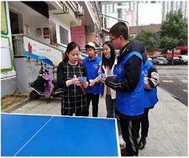 经济学院志服部全体成员在定点服务社区里为社区居民普及医保相关方面的知识,发放宣传手册,也为社区中的商铺发放了不同种类的垃圾袋。同时,志服部成员积极为居民讲解垃圾分类知识,并主动为他们解答疑难。