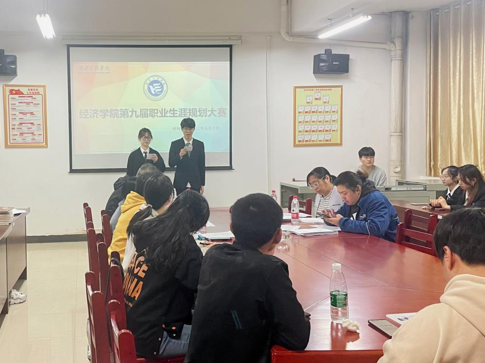 2023年5月10日12:25,经济学院在G-115会议室举办了第九届职业生涯规划大赛。经济学院党总支副书记卢时光、经济学院学办主任戴晶晶、经济学院辅导员李军花、就业专干刘佳馨、管理学院包海燕出席并担任评委,2021级共十一名同学参加了本次比赛。