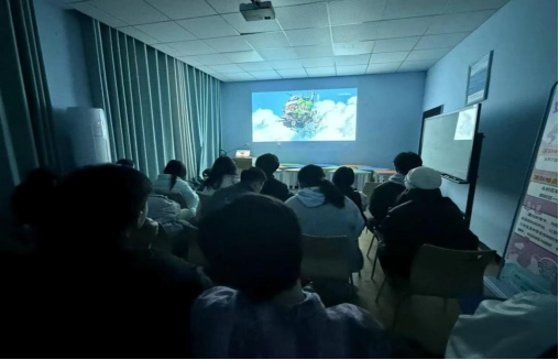 活动现场,同学们井然有序地落座。影片开场后,其绚丽多彩的画面与悠扬动听的配乐,顷刻间将同学们引入一个奇幻的世界。在影片中,少女苏菲遭诅咒变成年迈婆婆后,偶然闯入哈尔的移动城堡,并与神秘魔法师哈尔、火焰魔卡西法一同开启了一场冒险之旅。影片的剧情跌宕起伏,不仅展现奇幻的魔法景象,铺陈浪漫的故事脉络,更借由角色之间的情感羁绊,深刻地诠释“爱与勇气能够破除困境”“接纳真实自我”的主题内核,在同学们中引发了强烈的共鸣。
