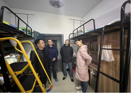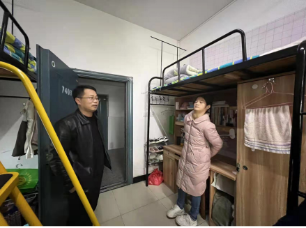 12月16日上午,管理学院党委书记余博、副书记谭超、学办主任黎博一行来到宿舍看望慰问了“大学生自强之星”沈群。