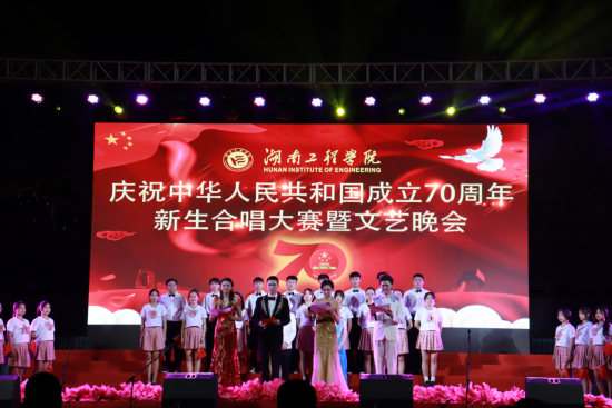 9月29日晚湖南工程学院“青春告白祖国”庆祝中华人民共和国成立70周年新生合唱比赛在湖南工程学院体育馆成功举行。