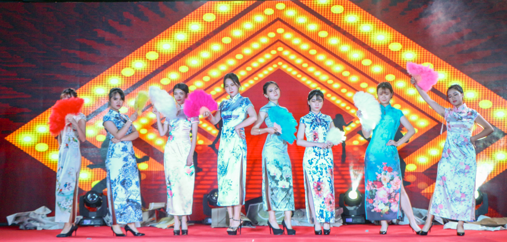 魔术过后的创意服装秀《夜上海》,礼仪部干事们各种风姿卓越,废报纸穿在身上也因他们的颜值与气质而显得别有一番风味了,更何况是旗袍在身显出的民国风呢?