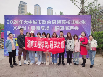 4月11日,2021年大中城市联合招聘高校毕业生义乌站(电商专场)巡回招聘会拉开帷幕,湖南工程学院管理学院11名学生在包海燕等老师的带领下来到义乌国际博览中心进行参观交流。