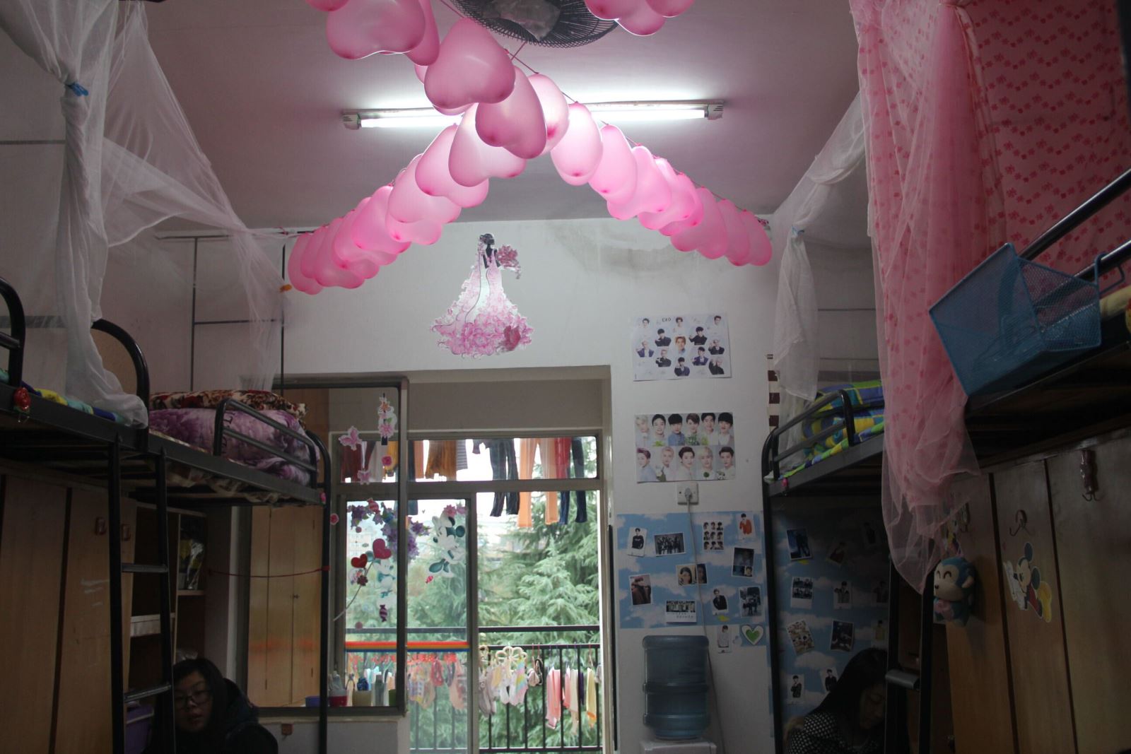 评委们每走访到每一间寝室,寝室成员都自豪地介绍自己寝室的设计理念,也得到老师们纷纷点赞。“我们打着台灯贴壁纸弄到了凌晨两点呀!”同学们介绍道。为了将自己的寝室装扮成一个靓丽、温馨的家,室友们都付出了努力。