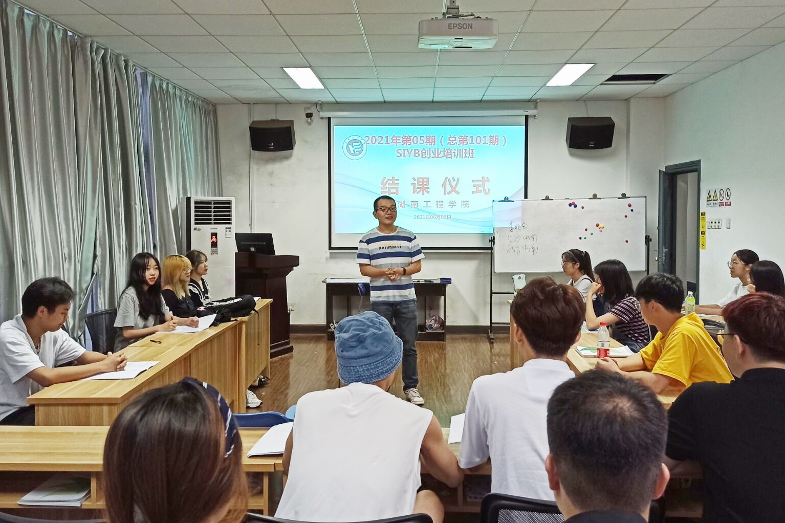 为激发我校学生的创业意识、提高学生的创业素质和能力,管理学院与湘潭市人社局、我校创新创业学院联合,利用周末及课余时间,面向全校学生开展了SYB创业培训。今年上半年,共举办SYB培训班6期,持续近4个月,来自管理学院、经济学院、机械工程学院等8个学院的180名学生接受了培训,并经考核合格,获得了“SYB创业培训合格证书”。