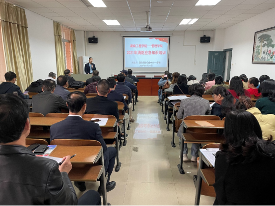 为打造平安校园、进一步加强管理学院教师的消防安全意识,11月16日下午,管理学院邀请了湘安消防公益中心李俊教官在G505会议室为全体教师举行了消防应急知识培训。