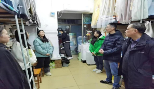 在本次走访过程中,领导和老师们同宿舍的同学们沟通交流学习及生活上的问题,领导和老师们亲切的话语,让宿舍学生们感受到了浓浓的关爱之情。