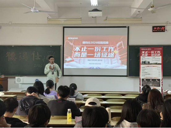 德玛仕有限公司是位于广东中山的电商企业,年营收规模达7亿元。宣讲会上,企业代表详细介绍了公司发展现状、业务布局和人才需求,并就学生关心的职业发展路径、薪酬福利体系等问题进行细致解答。