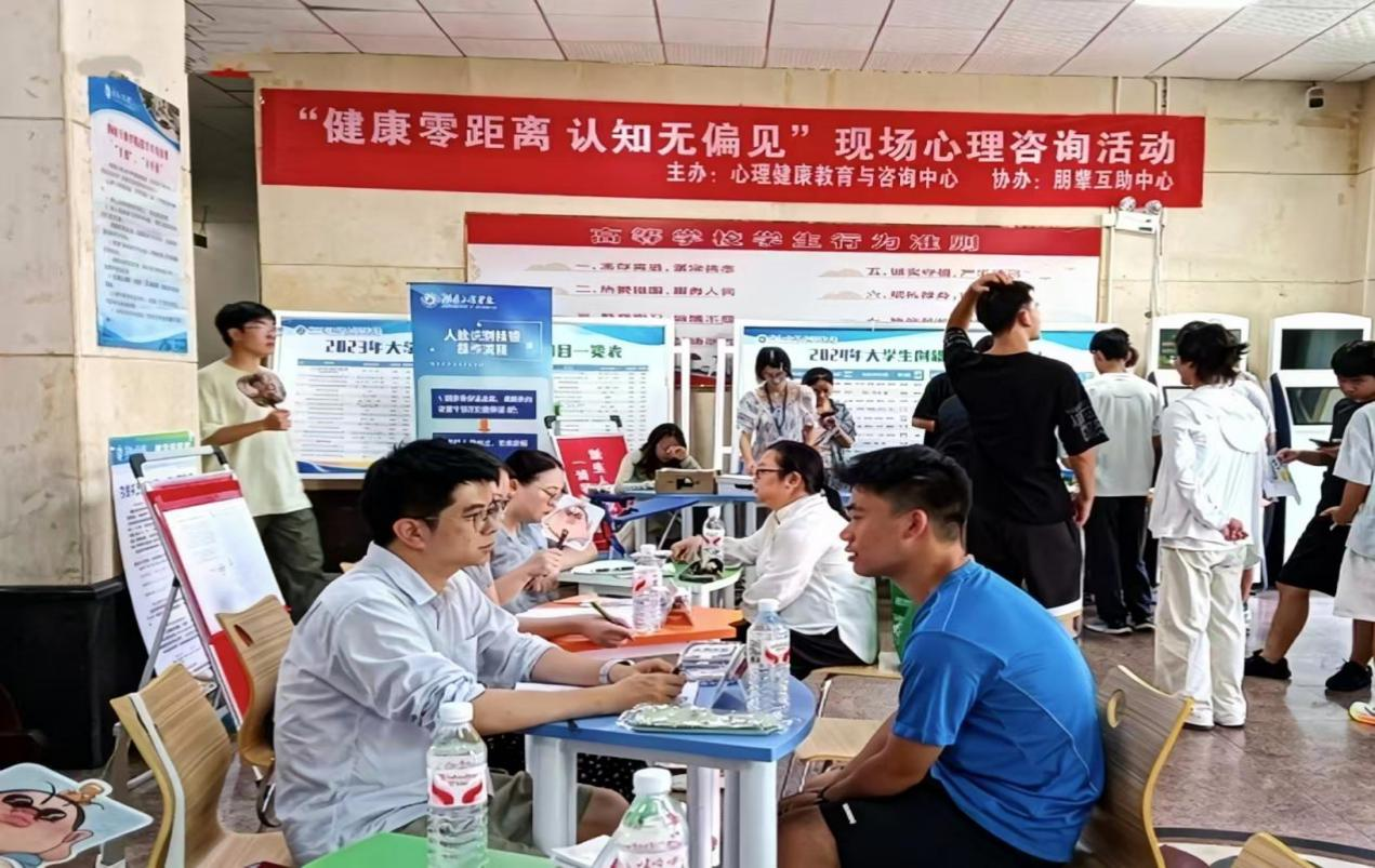 10月10日,我校在B栋教学楼大厅开展以“健康零距离,认知无偏见”为主题的现场心理咨询活动。活动由心理健康教育与咨询中心主办,朋辈互助中心及各学院心理部协办,旨在为学生提供便捷的心理支持,普及心理健康知识。