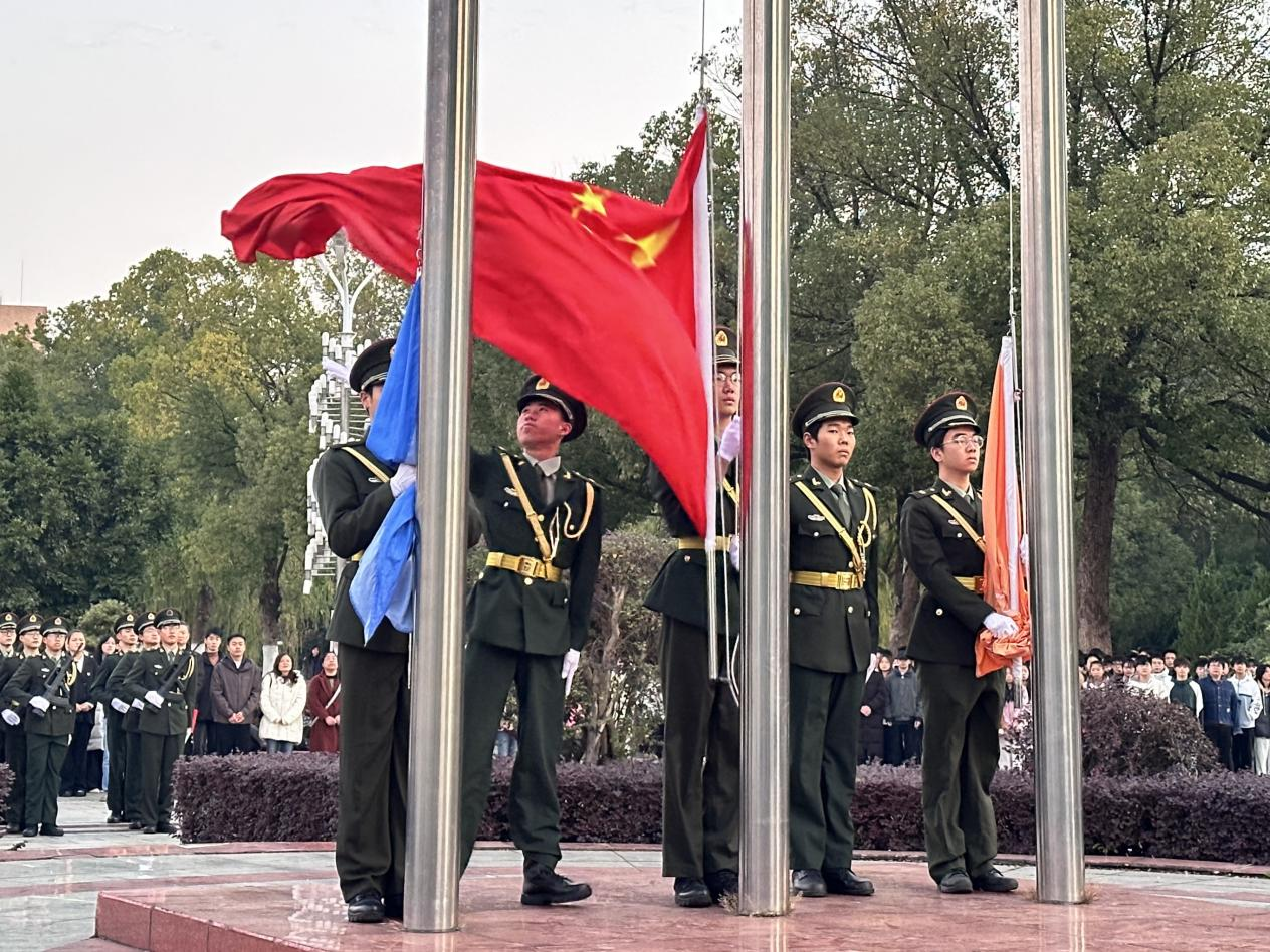 潘立军教授在国旗下讲话,勉励全体学子胸怀家国、勇担重任,将个人理想融入时代发展,用实干与奋斗书写无悔青春。