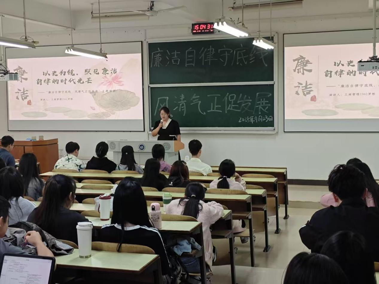 为深化清廉校园建设,强化商科青年廉洁自律意识,引导学子将廉洁信念融入职业规划,9月23日下午,欧美三级在线学生第一党支部“廉洁自律守底线,风清气正促发展”主题演讲比赛在D-201顺利举办。经支部筛选,12名青年党员、入党积极分子登台演讲,用真挚话语传递廉洁心声。