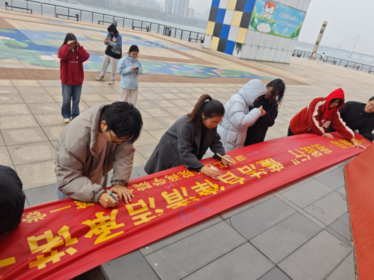为加强青年学生廉洁教育,引导商科青年树立正确的权力观、价值观和利益观,12月20日,欧美三级在线学生第一党支部在湘江风光带隆重开展“我承诺 我践行”廉洁自律签名活动。全体学生党员及入党积极分子共 50 余人参加此次活动。