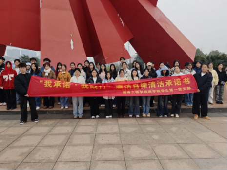 活动当天,全体学生党员按时在指定场地集结。在支部书记李军花的带领下,党员们集中学习廉洁自律相关准则与要求,深刻领会党风廉政建设重要思想。随后,学生党员依次现场签署《廉洁自律承诺书》,倡导全体学生党员 “严守纪律底线、坚守诚信原则、永葆清廉本色”,以实际行动践行党员使命。接着,全体参与者依次走向廉洁承诺签名横幅,郑重签下自己的姓名。