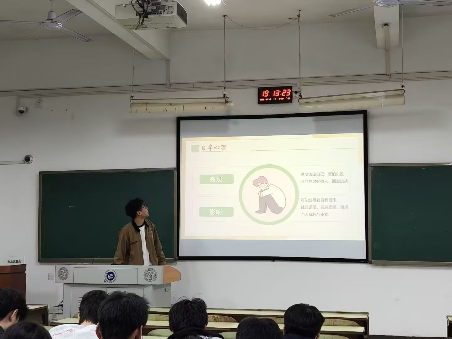 心理委员通过图文并茂的PPT,系统讲解了情绪管理、压力应对、人际交往等贴近学生实际的心理知识,并结合典型生活案例展开分析,使抽象的理论更具象、更易理解。在交流环节,同学们积极分享自身经历与感悟,在互动中深化对心理健康的认识。
