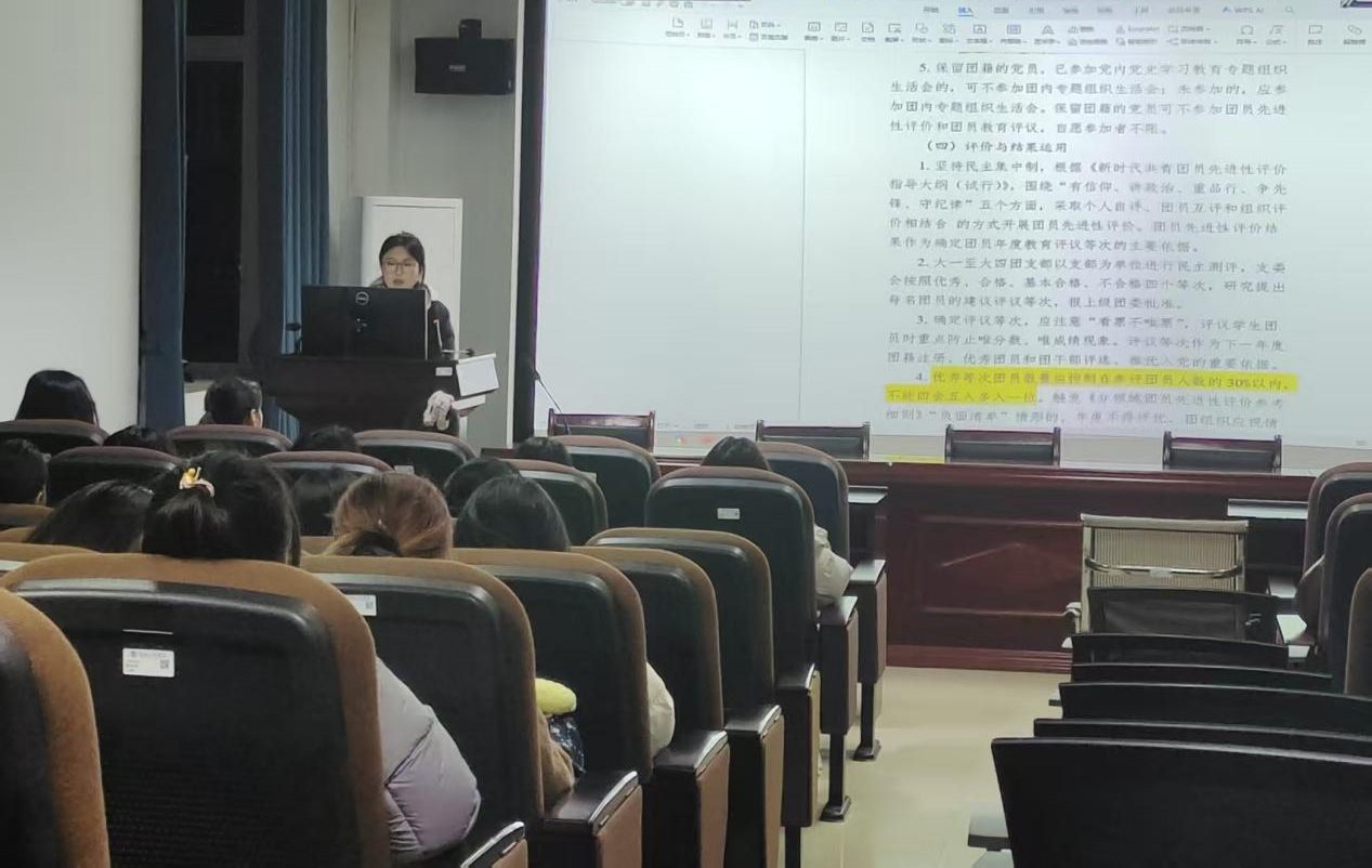 会前,欧美三级在线分团委组织全体团支书召开专题培训会,分团委书记邹牡燕带领组织部干部,讲解会议流程、评议标准及纪律要求,为各支部规范开展会议奠定基础。