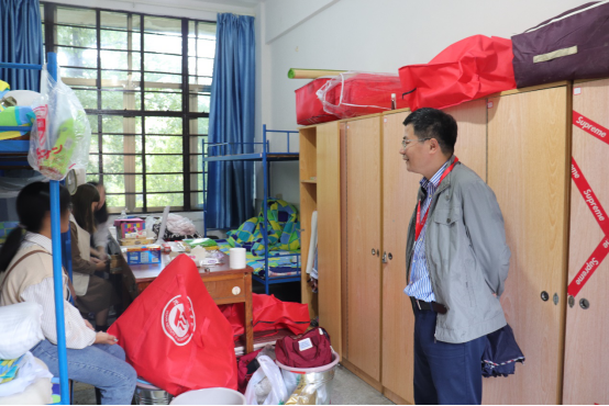 学校领导高度重视迎新工作,非常关心管理学院新生报道情况。校党委书记陈岳堂、校长易兵、副校长李军林、党政办主任曾永卫、学工处处长徐粤宇、校团委书记张细政、保卫处处长成平一行人来到南校区迎新点、宿舍实地视察,关心新生报道过程和寝室入住后的整体情况,并与新生亲切交谈。