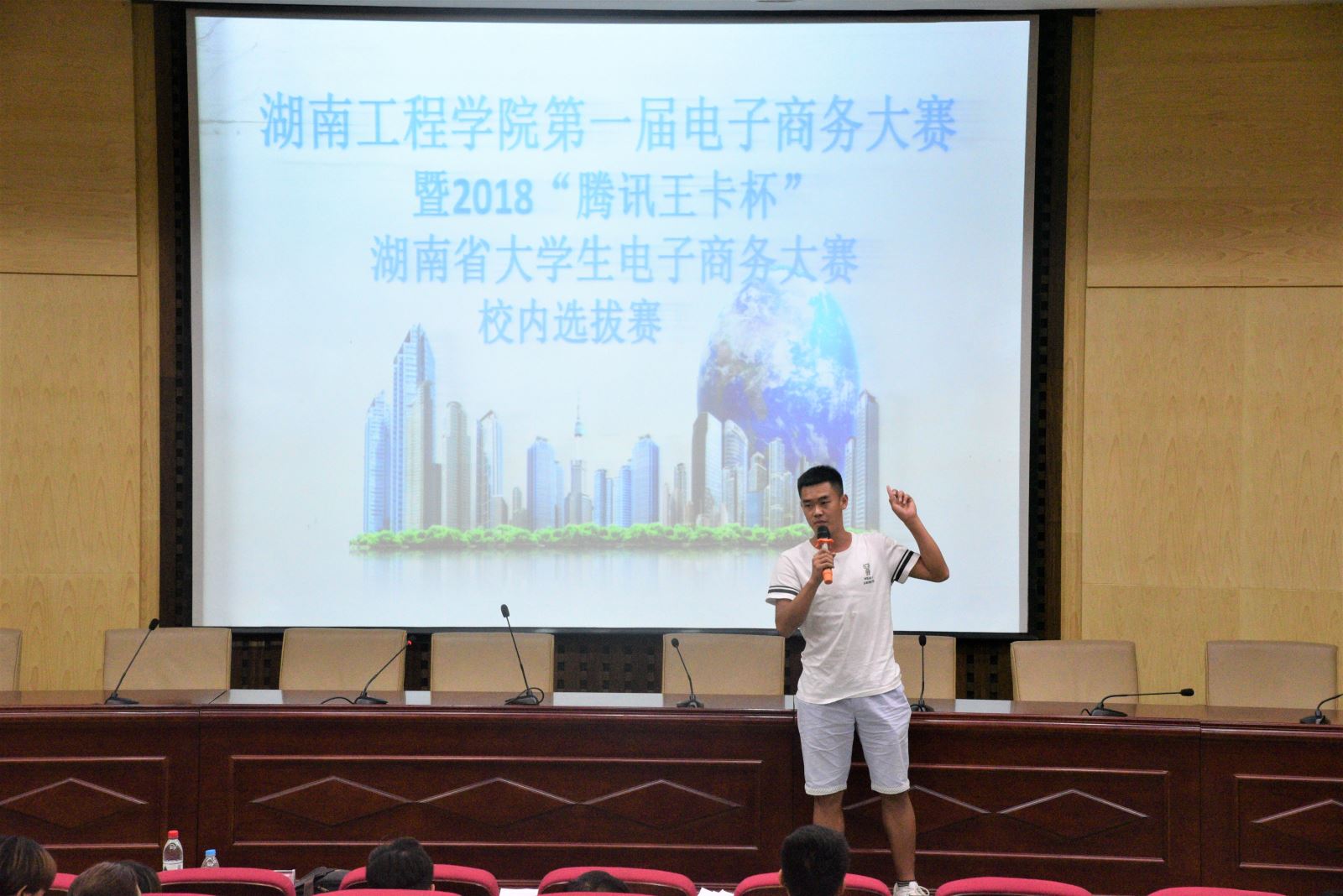 为进一步加强团队精神,全面提高学生团队协作,共同思考的积极性和主动性,以优异的成绩为电子商务做出贡献,同时更好的加强团队协作能力,2018年5月18日,湖南工程学院创新创业学院及湖南工程学院管理学院在第二报告厅开展了2018“腾讯王卡杯”湖南省大学生电子商务大赛校内选拔赛。