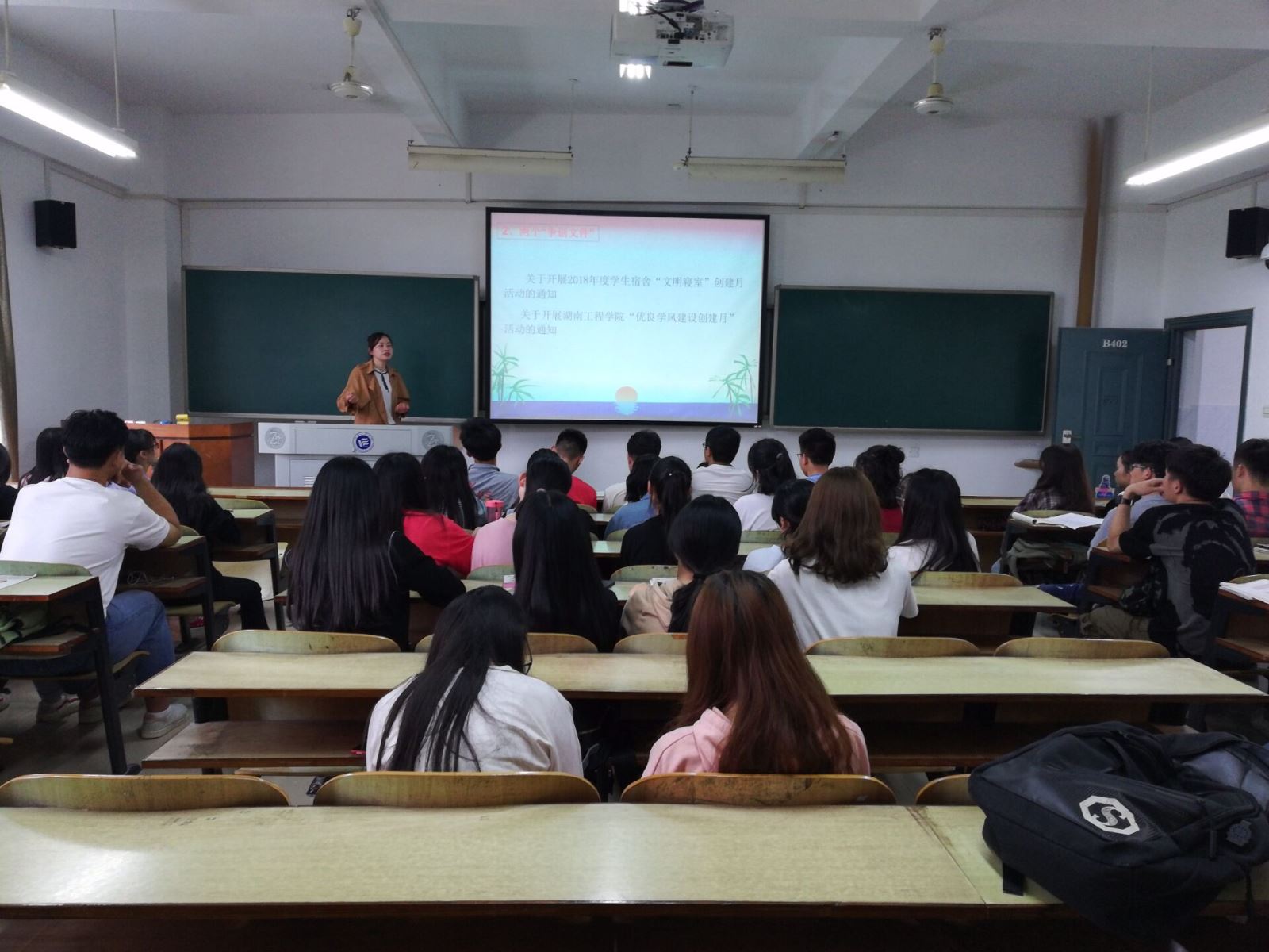 活动实施之初,管理学院于4月3日下午4:20在D303开展了管理学院学生工作迎评动员大会。管理学院钱祖煜副书记对管理学院全体辅导员老师、全体班主任老师与各班班长、团支书以及学生会主席团、部长团发表了重要讲话,会议十分顺利,迎评工作就此拉开序幕。