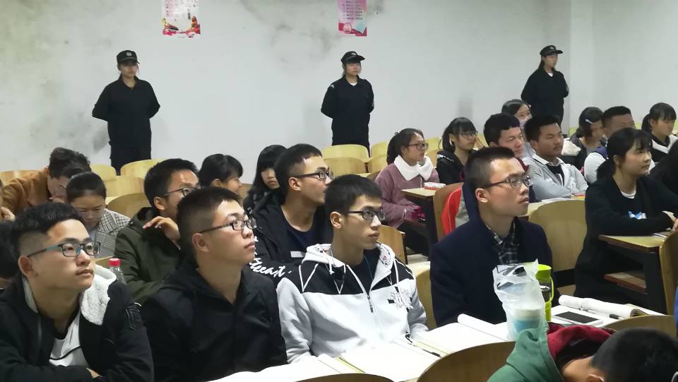 2017年12月6日晚7点,为增强大一新生的自我安全意识,提高自我防范能力,我校新校区校卫队队员在C201进行大学生防骗、防盗、防抢等知识的下班宣传。