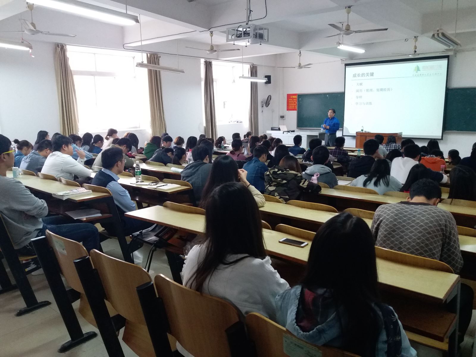 讲座伊始,余建国老师给同学们分享了他做人力资源的经历,然后由案例引入专业知识的讲解,提出了完成人力资源使命的关键因素,他指出,成为一名优秀的人才,应该要靠不断的学习与训练来增加自己的阅历,同时也要掌握心理学的知识,以此来理解人才。接着余建国老师依据人才测评与人事决策的关注点,指出同学们今后发展应该注意的地方。在讲座最后,不少同学积极向老师提问,在老师的指导下,更加清晰了就业方向。