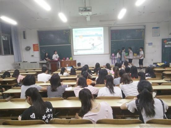 活动开始阶段,现场各种彩带和气球让教室显得格外温馨,琳琅满目的小礼品和小零食让大家蠢蠢欲动,别具一格的海报让人眼前一亮,更加使得这次活动的开展锦上添花。活动进行阶段,物流和会计的同学们积极踊跃地和大家分享城市建设的意义以及在学习生活中应该如何为创建文明城市贡献自己的一份力量。人力和市营的小伙伴们更是热情有加,一起读“创建文明城市,做文明湘潭人”的承诺书。活动过程中开展的小游戏也是新颖有趣,大二的同学们现场还和大三的学长学姐一同尬舞,赢得台下观众的连连欢呼。旅管和工管的班委们也认真负责地组织着同学们填写2017年湘潭市创建全国文明城市的调查问卷,活动中播放的微电影内容寓意深刻,发人深省。最后在一阵阵掌声和欢呼声中,九月团日活动圆满结束了。