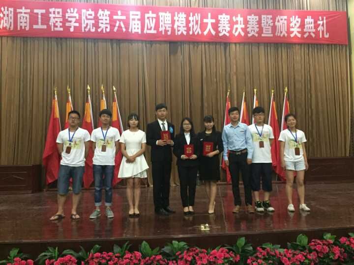 在2016年6月7日的湖南工程学院第六届应聘模拟大赛中于管理学院的参赛学生都取得了佳绩,张楠同学喜获冠军,刘文容和蒋玲婷同学喜获优胜奖,彭俊同学喜获最佳风采奖,同时管理学院还获评为“优秀组织奖”。