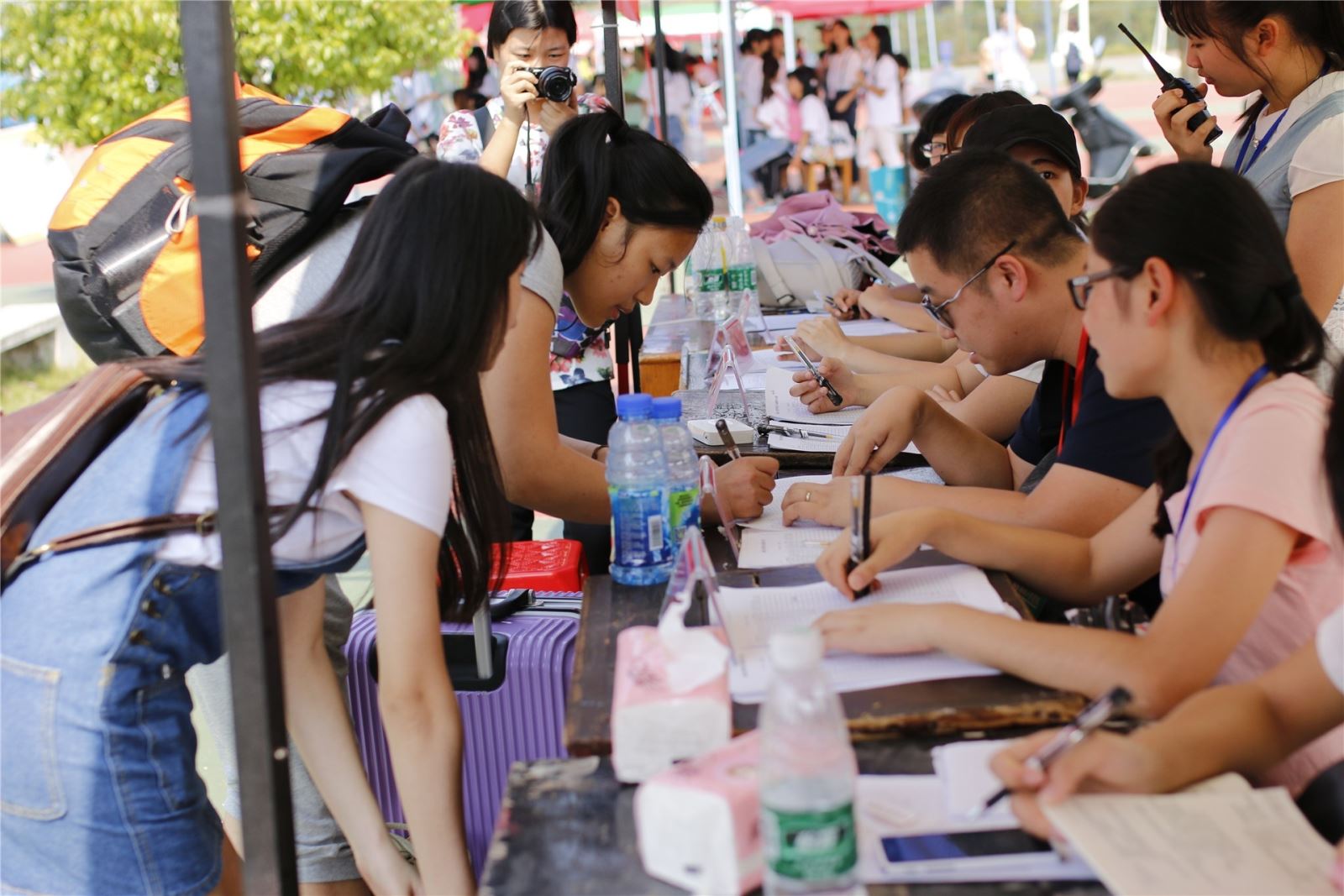 伴着秋日湖工上空灿烂的阳光,9月18日管理学院2015级本科新生迎新工作圆满落幕,我院共报到新生436名,报到率为98.19%。管理学院院长吴振顺,全体班主任、辅导员老师坚守迎新现场,学生会主席团组织开展学院各项迎新工作,此次迎新工作志愿者的主力军为管理学院的下班党员、学生会干部以及朋辈心理辅导员。迎新活动期间,在周密的计划与所有人员的密切配合之下,一切工作都井然有序的进行,赢得了所有新生和新生家长的满意与夸赞。