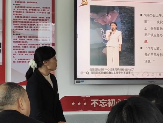 随后,分别由院党委副书记谭超、王染老师领学习近平给中国国际大学生创新大赛参赛学生代表的回信与《习近平在省部级主要领导干部学习贯彻党的二十届三中全会精神专题研讨班开班式上发表重要讲话强调》,呼吁在校学生充分利用当代社会资源培育创新思维,积极参与创新实践活动,争做创新型人才。最后,毛慧林老师、刘喜梅老师展开《在"新词""热词"中蓄力破题答好新时代新考卷》、《李东:岳阳90后基层干部坚守防汛一线为助两名同事脱险英勇殉职感人故事》微党课讲授。