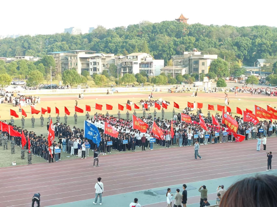 上午八点,运动会开幕式在庄严的国歌声中正式拉开序幕。各学院方阵依次入场,步伐整齐,气势昂扬。管理学院的学生们用铿销有力的步伐和热情洋溢的笑容,展现了新时代青年的朝气与风貌。随着副校长宣布运动会正式开幕,整个操场响起了热烈的掌声和欢呼声。
