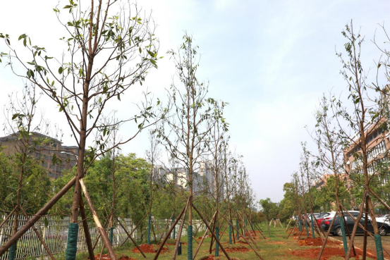 为了让金丝楠木在母校茁壮成长,彭丹花了不少心思。她跑遍了主校区有植被的各个区域,采土样、做测试,要找出最适宜金丝楠木生长的土壤。“在土层深厚、排水良好的中性土上生长最好。就这三块地。”彭丹带着学校后勤处相关工作人员分别来到思源碑前、电气楼停车坪旁,还有明德食堂后面的空地上。金丝楠木的生长地定好后,彭丹松了一口气,“终于可以移植了”。