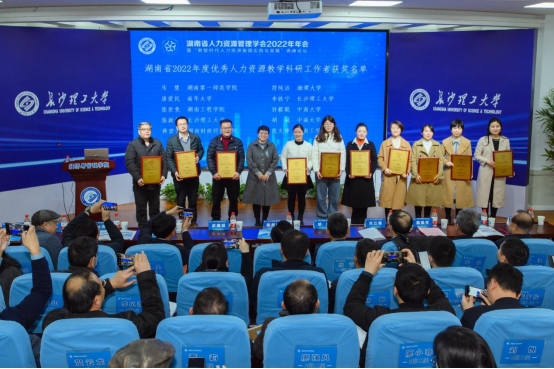 湖南省十一届人大常委会党组副书记、副主任,湖南省人力资源管理学会会长陈叔红和长沙理工大学原副校长叶泽教授发表致辞。会议新增了人力资源管理学会副会长,举行了理事选举及授牌仪式,并进行了年度评优评先颁奖,我院人力资源管理教研室主任张世免荣获湖南省优秀人力资源管理教学科研工作者。