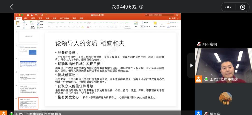 为增加同学们对创业的了解,提高同学们的创业意识,让同学们在创业之前做好充分的准备并把握住创业的关键要素。管理学院于2020年11月19日晚上19:00举行线上分享讲座。讲座由已经毕业并且创业成功的蓝犀牛搬家的创始人——王粟主讲,王粟,2007年毕业于湖南工程学院工商管理专业;2008年就职于阿里巴巴b2b,2012年就职于易到用车,2013年初创立蓝犀牛搬家,互联网搬家的领先者,国家高新技术企业。并于2014、15年累计获得2600万美金的君联、百度和富达的投资。目前公司全国覆盖28个城市,用户使用量居首位。本次“创业从零开始”讲座,管理学院17-20级共有500余名学生参与。