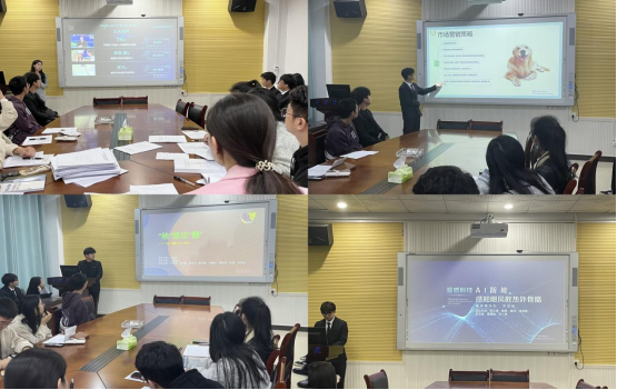 比赛伊始,陈祎婷老师对评委老师及学生们的到来表示真挚的欢迎,并详细介绍了本次比赛的要求。比赛分为PPT展示环节和答辩环节。参赛队伍分别从市场营销、技术壁垒、发展与展望等多方面介绍项目的基本情况,展现队伍的创新能力和团队合作精神,评委老师也针对项目做出点评并提出优化建议。