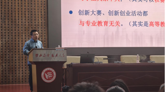 紧接着,田小文博士就创新创业比赛的发展,谈论“赛创融合”理念。他为同学们揭示了创新创业应具备的素质和能力,包括创新思维、风险意识、团队合作精神、领导力、学习能力、社会责任感和坚韧不拔的精神。田小文博士说:“只有不断挑战自我、超越自我,才能在创业的道路上走得更远、更稳”。